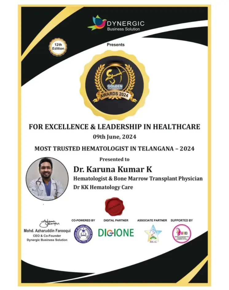 "Most Trusted Hematologist in Telangana - 2024"